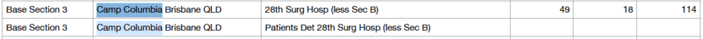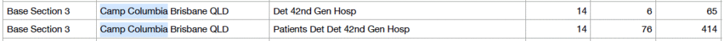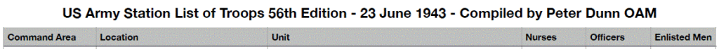 The following are troop numbers at Camp Columbia on 23 June 1943 from US Army Stations List 56th Edition:-